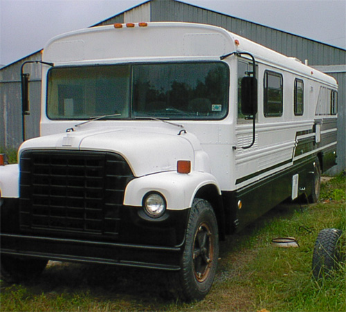 Here is a shot of the right side pretty much complete except for addition of the awning and detailing the wheels and hubs. There is 3 1/2 gallons of primer, two gallons of gloss white, a gallon of gloss black, 1 quart of gloss gray, 10 rolls of masking tape in various widths and a couple of months worth of newspapers in the paint job so far...... The pig didn't make the pictures....THIS TIME!