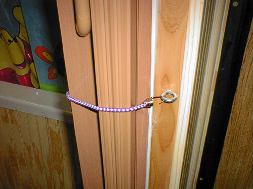 Simple door keeper for the bathroom door. Keeps them from sliding closed while driving on rough roads. The bedroom door has a similar holder. They will stay closed by the magnetic catches if you need, but just didn't want to stay open.