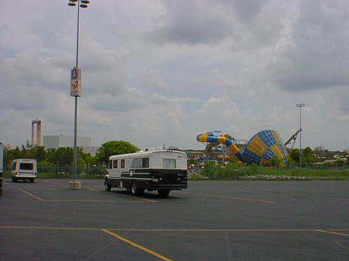 Here's a shot of the old girl making her appearance at Fiesta Texas. That tower on the left is the Scream and on the right is the Texas Tornado water ride. This is a Six Flags park and they welcome RVs and busses. Look at the size of those parking spaces! They are longer than my bus by a few feet. They are also wide enough you could probably use your awning if you had to and make getting in and out of your RV easy with plenty of elbow room. There was a very nice 35 foot motorhome parked on my left with the jacks down and a nice new VanHool charter bus on the left of that and it's only about 10:00 AM. There were 50 to 80 of these spaces in the parking lot. The bus was the rest area and sanctuary for us and some family members who drove down and met us there. We arrived early, played hard, watched shows, chilled in the bus during the heat of the day, got wet in the water park, went to the bus about 7:00 PM, changed into dry clothes, ate a nice lunch, then went back in and stayed and played until the fireworks and laser light show was over and the park closed. We spent the night dry camping nearby and went to the San Antonio Zoo the next day. Cruised home that evening and had a real nice two day/father's day vacation.